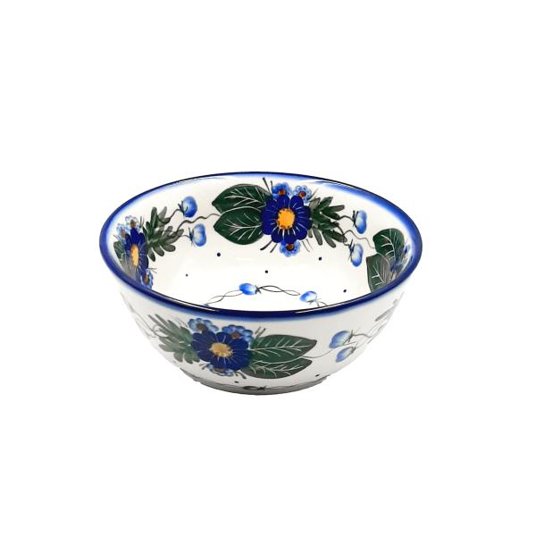 Wykorzystujemy delikatne, drobne detale, które tworzą wieńce, obwódki lub pokrywają całą powierzchnię naczyń. Talerze głębokie, wazy czy dzbanki zdobione są też większymi elementami, takimi jak bukiety róż, bratków, krzaczków truskawek czy słoneczników. Kolory, w których powstaje porcelana bolesławiecka, to przede wszystkim feeria błękitów i zieleni z niewielkimi akcentami innych barw.
